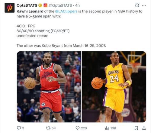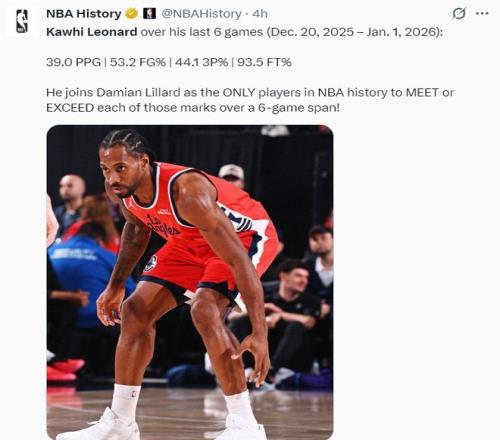 此役后伦纳德又创造了多项纪录:1.一周内伦纳德分别拿到55分、45分是生涯第一高与第二高;