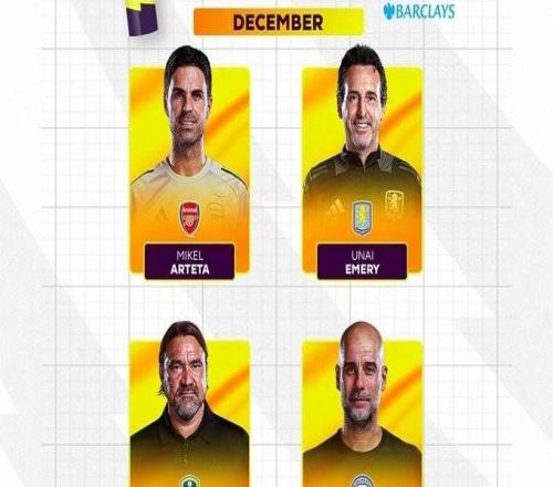 英超12月最佳教练提名:阿尔特塔、瓜帅、埃梅里及法尔克入围 -